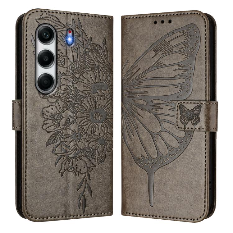 Funda de Piel para Tecno Camon 40 Pro 4G con Diseño de Mariposa en Relieve (Gris)