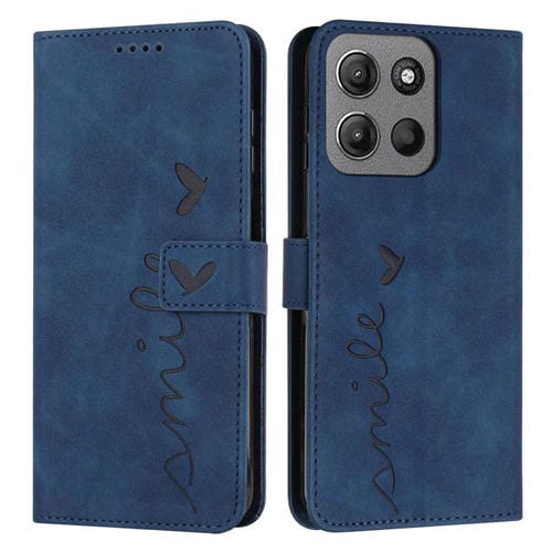 Funda de Piel con Relieve de Corazón para Motorola Moto G15 con Cordón Largo (Azul)