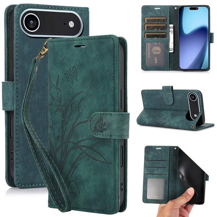 Funda de piel con relieve de mariposa y orquídea para iPhone Air (verde)