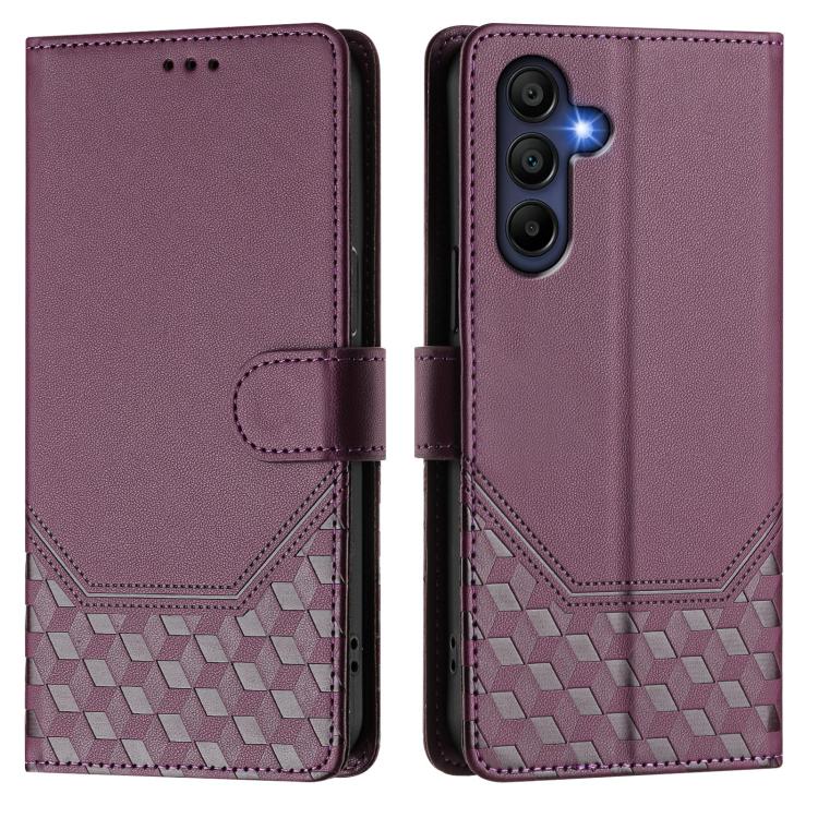 Funda de piel con relieve de panal RFID para Samsung Galaxy A17 4G (violeta)
