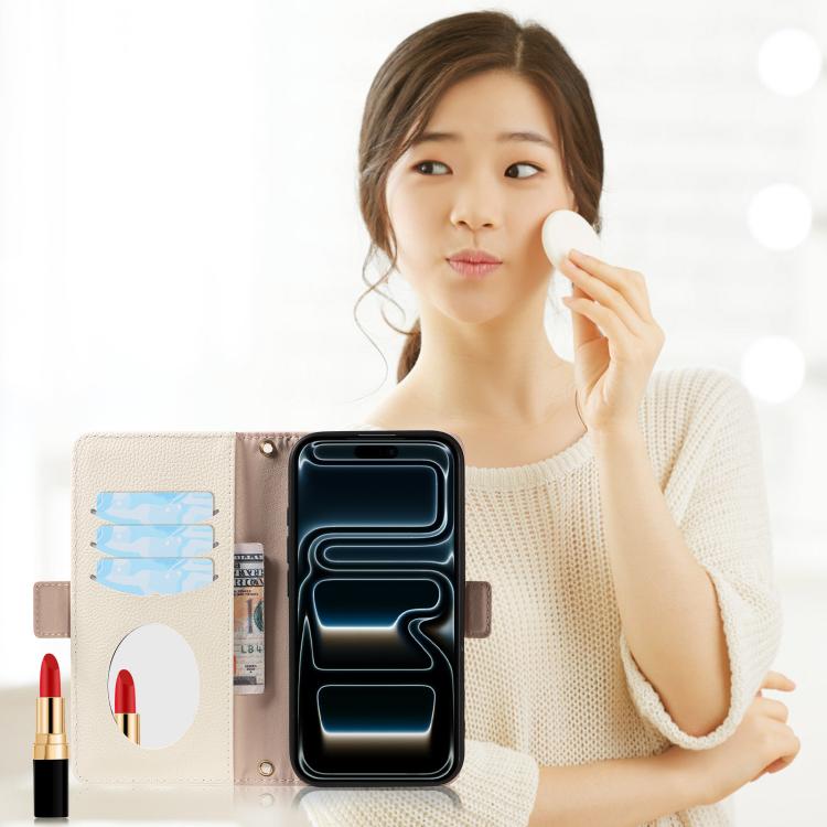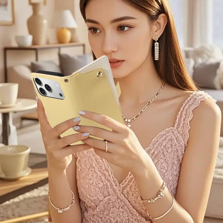 Funda de piel con textura de lichi y espejo para iPhone 17 Pro (amarilla)