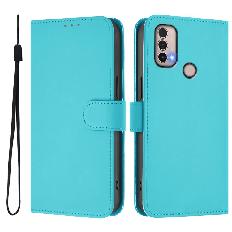 Funda de Piel Sintética con Cordón para Motorola Moto E20/E30/E40 (Azul Lago)