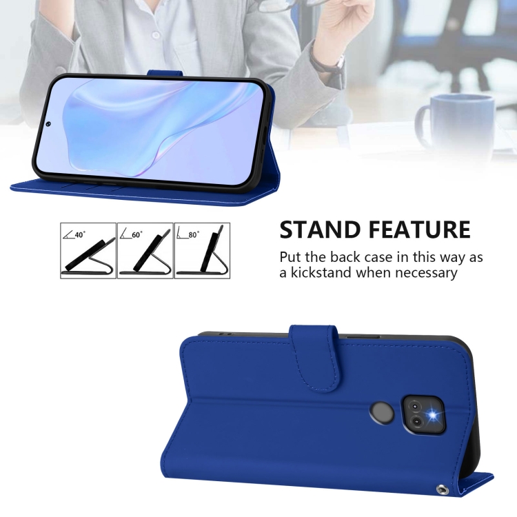 Funda de Piel Sintética con Cordón para Motorola Moto G Play 2021 (Azul Oscuro)
