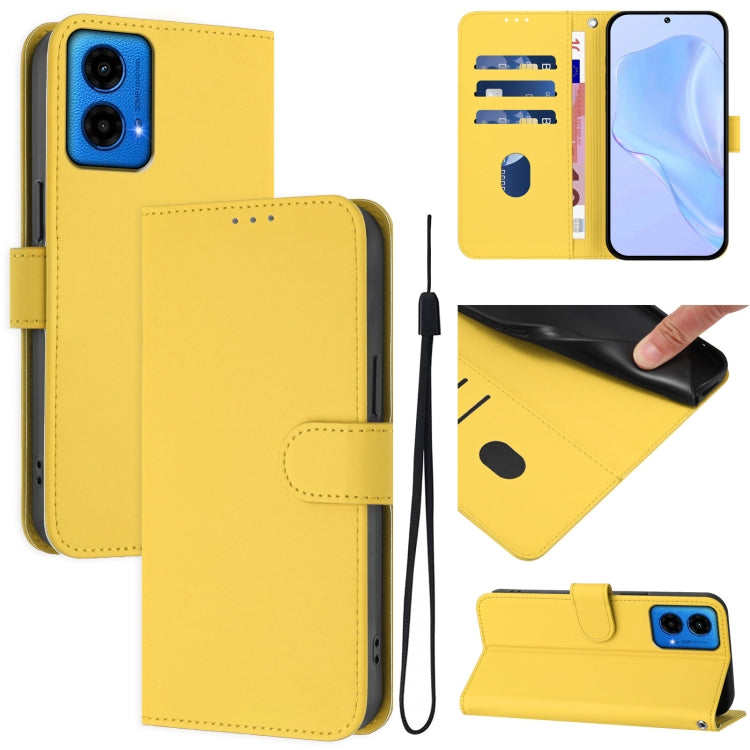 Funda de Piel Sintética con Cordón para Motorola Moto G45 5G y G34 5G (Amarillo Limón)