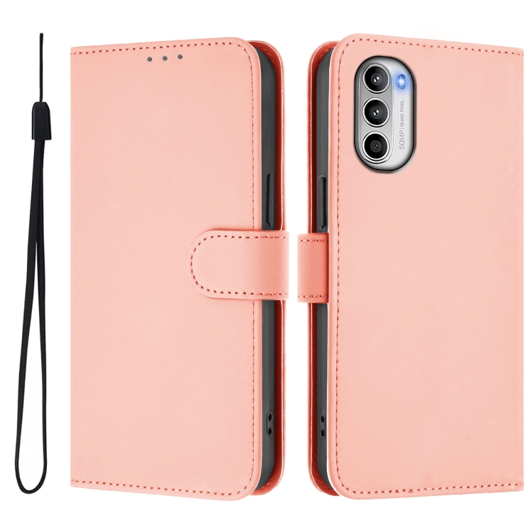 Funda de Piel Sintética con Cordón para Motorola Moto G52 4G y G82 5G (Rosa)