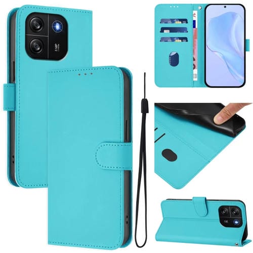 Funda de Piel Sintética con Cordón para Teléfono BlackView Wave 6C (Azul Lago)