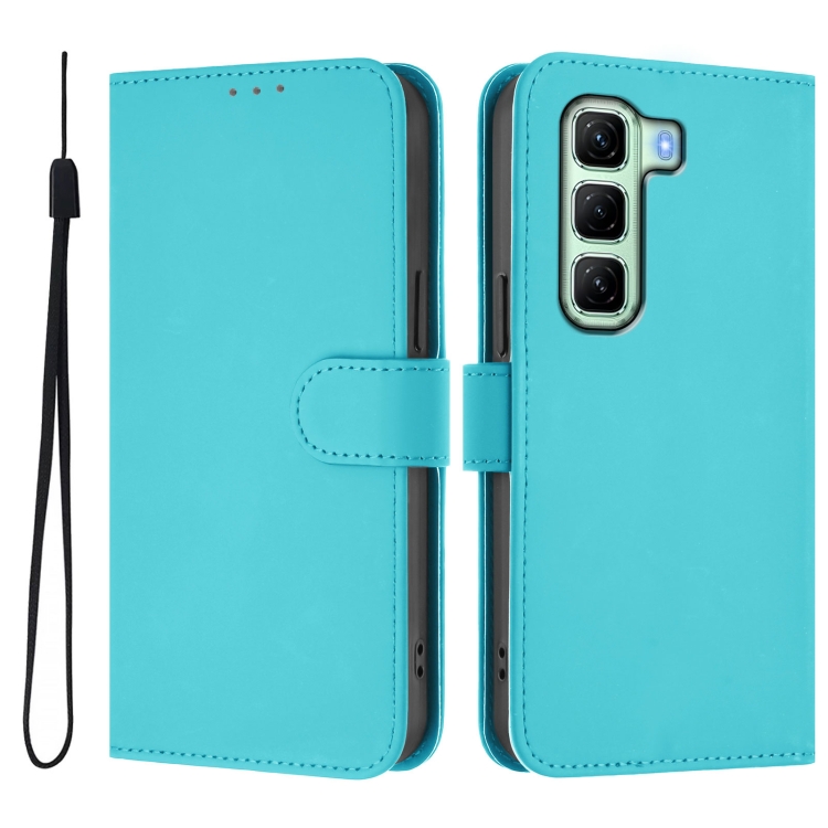 Funda de Piel Sintética con Cordón para Infinix Hot 50 5G (Azul Lago)