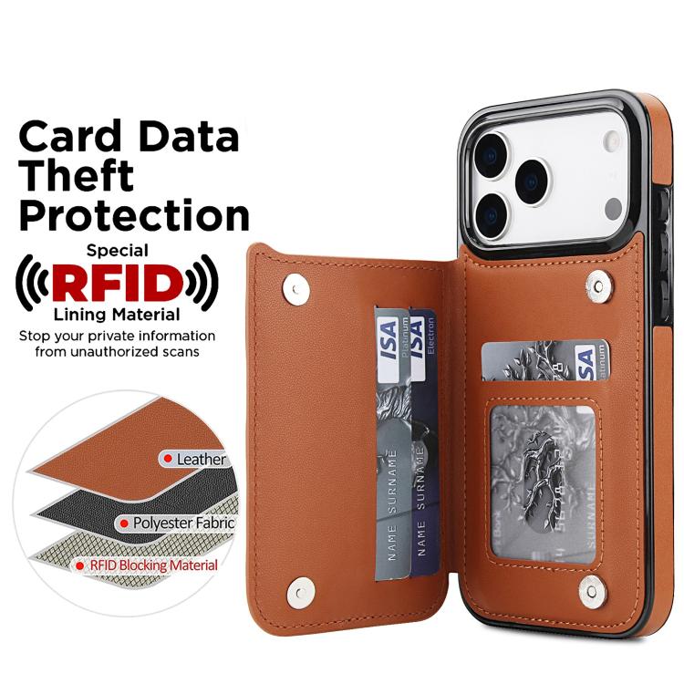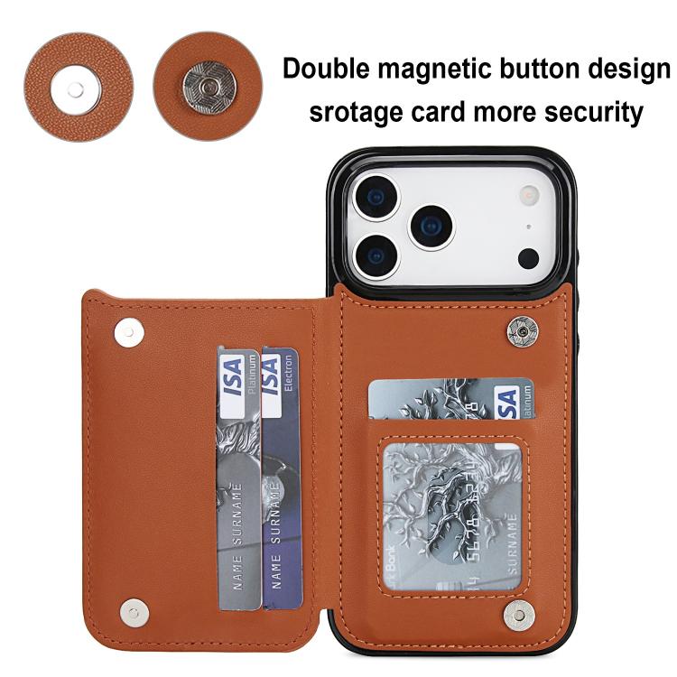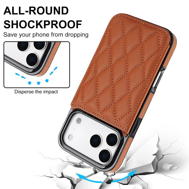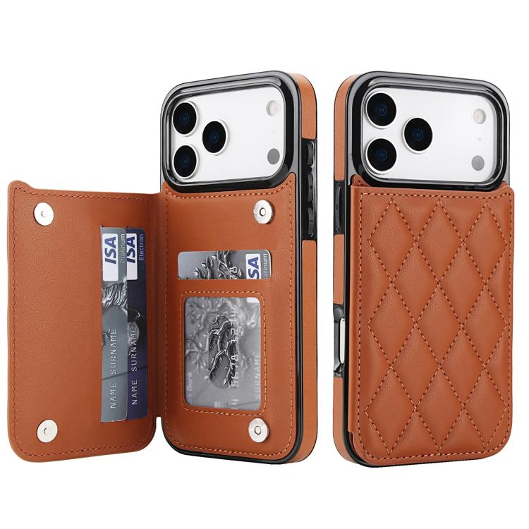 Funda de piel sintética con doble hebilla y diseño rómbico para iPhone 17 Pro Max (marrón)