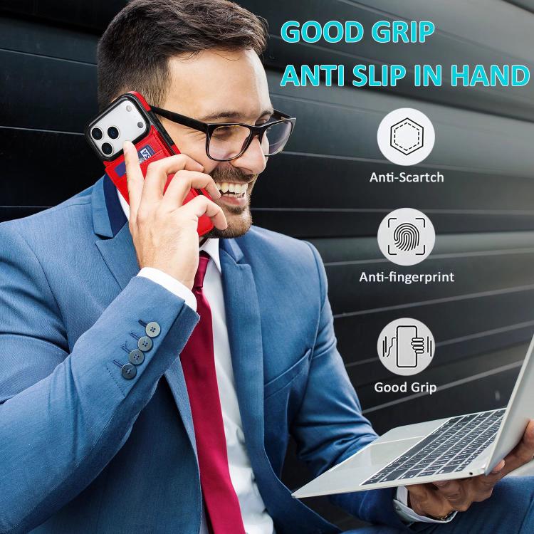 Funda de PU con ranuras para tarjetas para iPhone 17 Pro Max (color sólido, rojo)