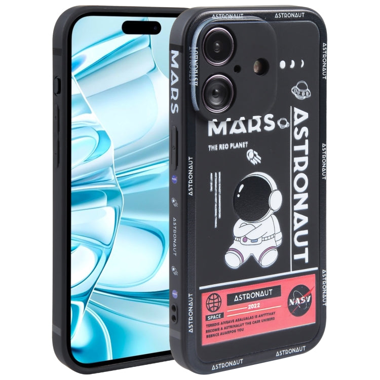 Funda de Silicona para iPhone 16 con Borde Recto y Diseño Astronauta (Negro)