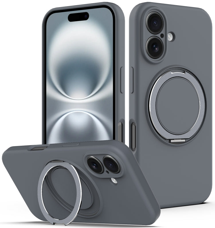 Funda de Silicona Líquida Magsafe para iPhone 16 con Soporte Giratorio (Gris)