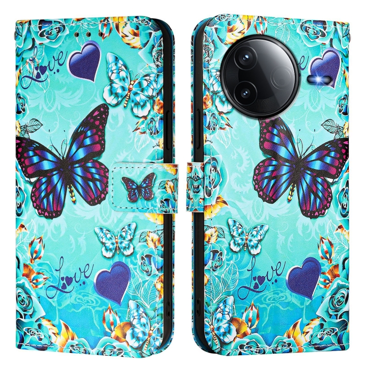 Funda de Teléfono de Cuero con Patrón de Dibujo de Colores de Tejido Liso para Redmi K80/K80 Pro (Mariposa de Amor)
