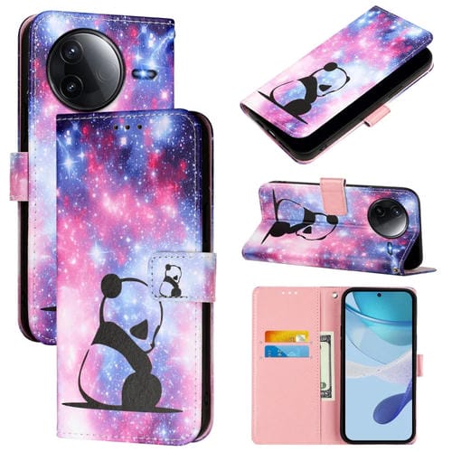 Funda de Teléfono de Cuero con Patrón de Dibujo de Colores de Tejido Liso para Redmi K80/K80 Pro (Panda Bebé)
