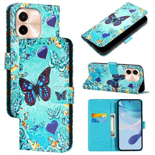 Funda de Teléfono de Cuero con Patrón de Dibujo de Colores de Tejido Liso para Vivo Y28 4G (Mariposa de Amor)