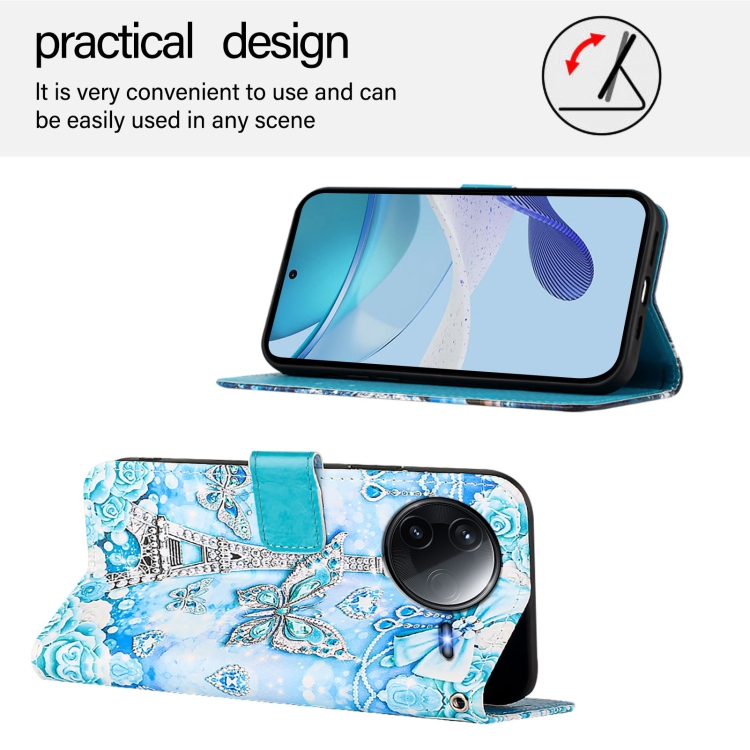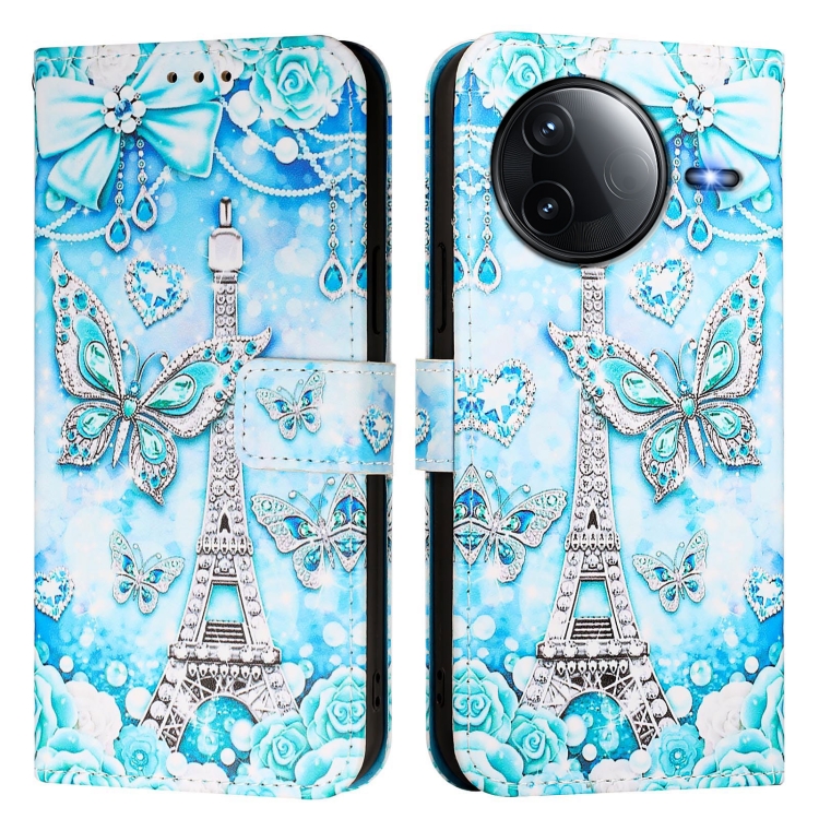 Funda de Teléfono de Cuero con Patrón de Dibujo de Colores y Tejido Liso para Redmi K80/K80 Pro (Mariposa En Forma de Torre)