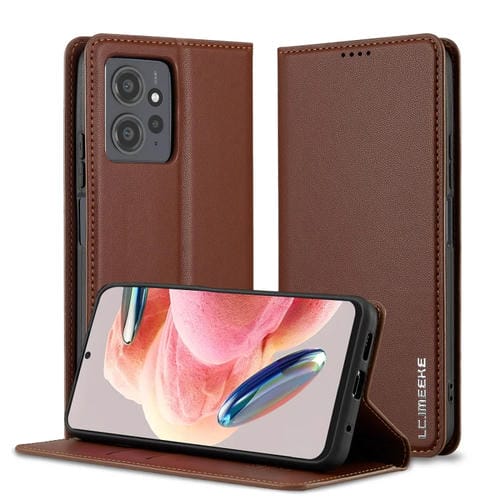 Funda de Teléfono de Pu con Textura Fina Esmerilada para Redmi Note 12 4G Global Lc.Imeeke L1 Series (Marrón)