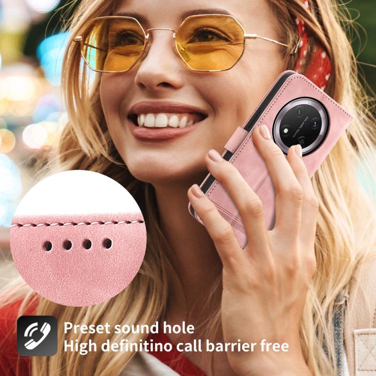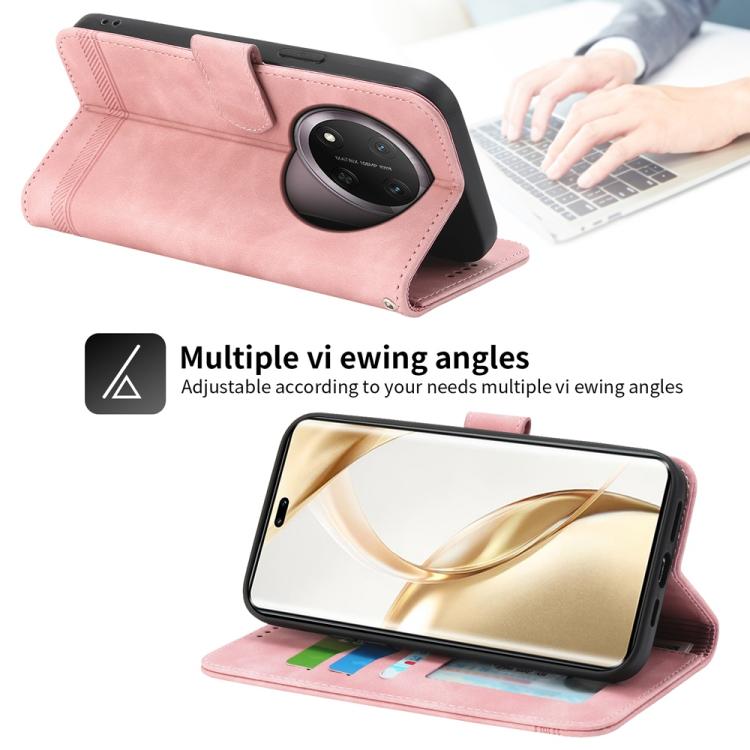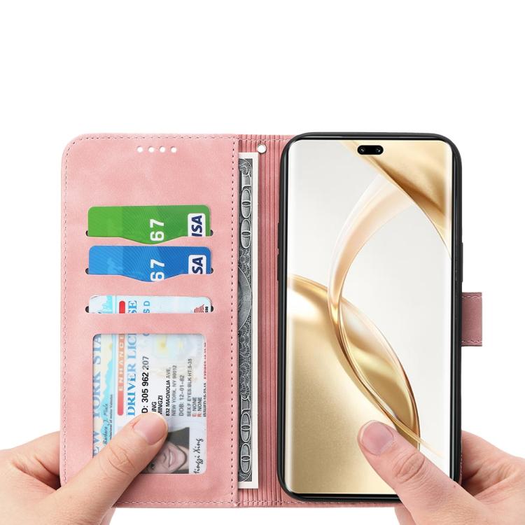 Funda híbrida TPU y cuero sintético Dierfeng Dream Line para Honor X9C Global y Magic7 Lite (Rosa)