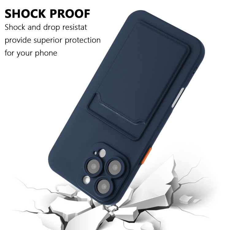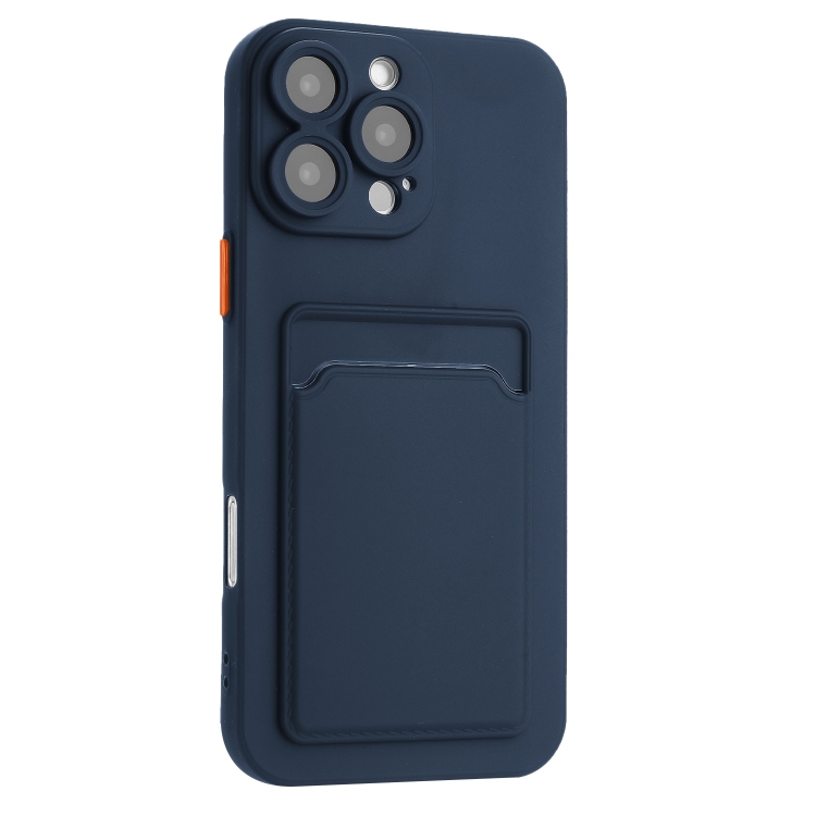Funda TPU para iPhone 16 Pro Max con Botones y Diseño de Tarjeta Tacto Piel (Azul Oscuro)