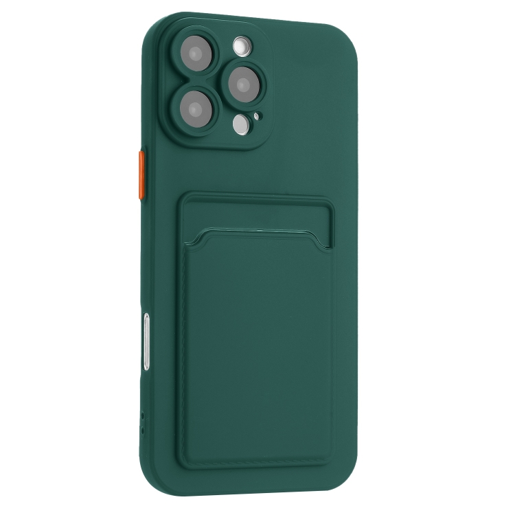 Funda TPU con Botones y Diseño de Tarjeta con Tacto de Piel para iPhone 16 Pro Max (Verde Oscuro)