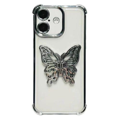 Funda de TPU con diseño de mariposa 3D galvanizada para iPhone 17 (plateada)