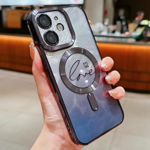 Funda TPU con Purpurina y Degradado de Plumas para iPhone 12 (Negro)