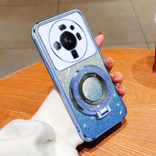 Funda de TPU con Soporte Redondo y Purpurina Degradada para Xiaomi 12S Ultra (Azul Sierra)