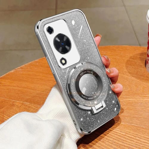 Funda TPU con Soporte Redondo y Purpurina Degradada para Huawei Enjoy 70 (Plateada)