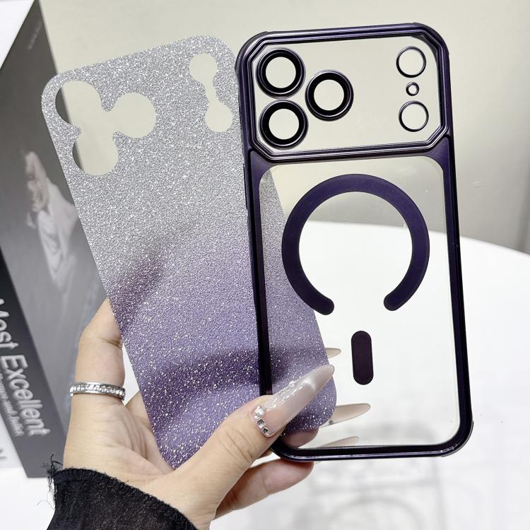 Funda de TPU MagSafe con ventana grande, brillo degradado, mate y galvanizada para iPhone 17 Pro Max (morado)