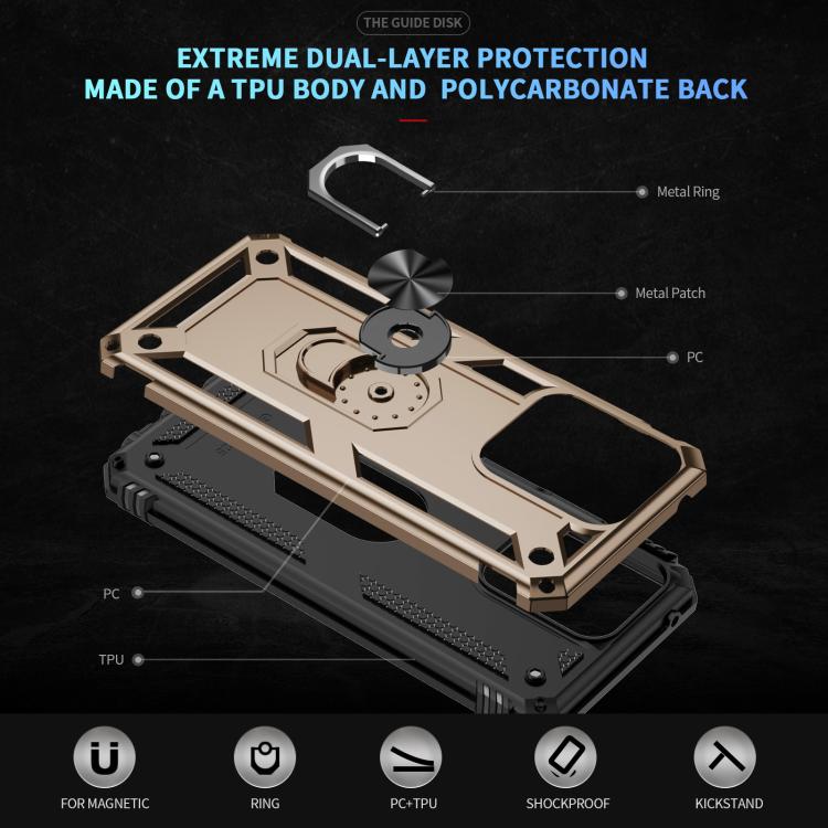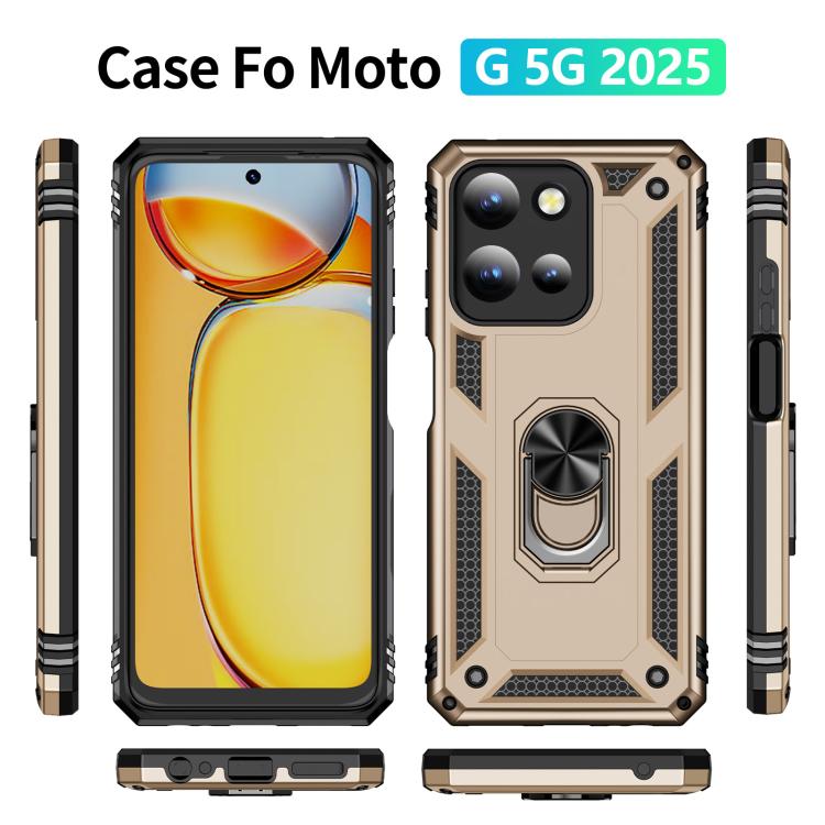 Funda TPU + PC para Motorola Moto G 5G (2025) a Prueba de Golpes con Soporte (Dorada)