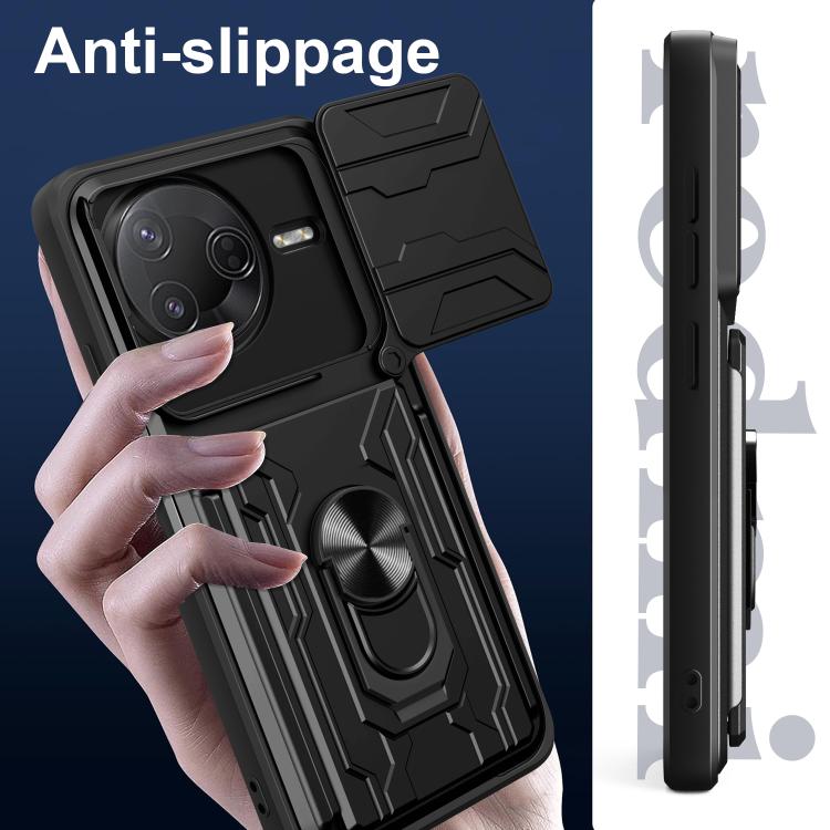 Funda deslizante de TPU y PC con ranura para tarjetas para Xiaomi Poco F7 Pro (blanca)