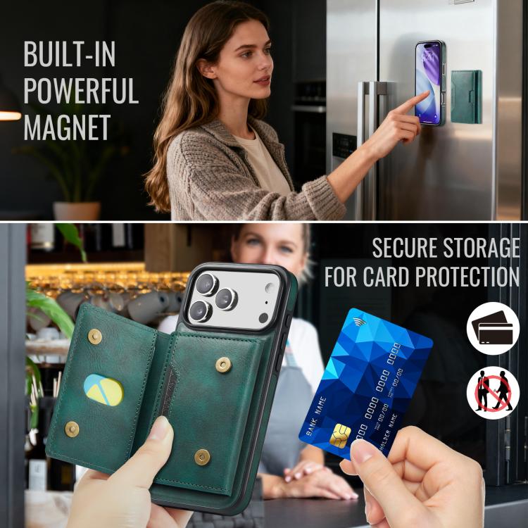 Funda desmontable para iPhone 17 Pro Max MAGKING K4 Series MagSafe RFID con tarjetero plegable (verde)