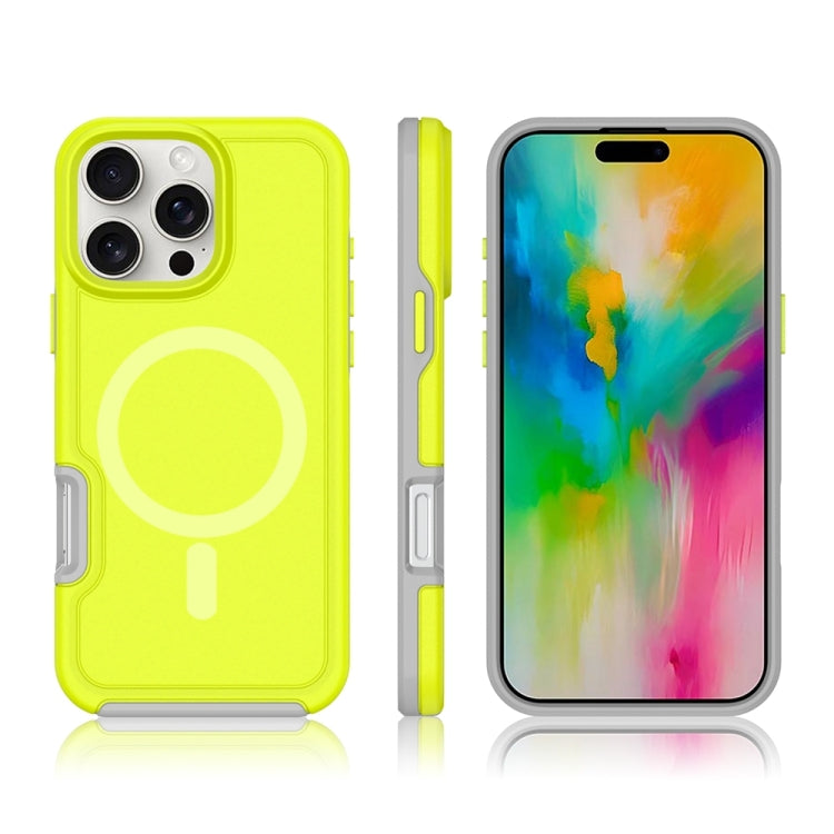 Funda Híbrida TPU y PC para iPhone 16 con Protección Magsafe y Antigolpes (Verde Fluorescente y Gris)