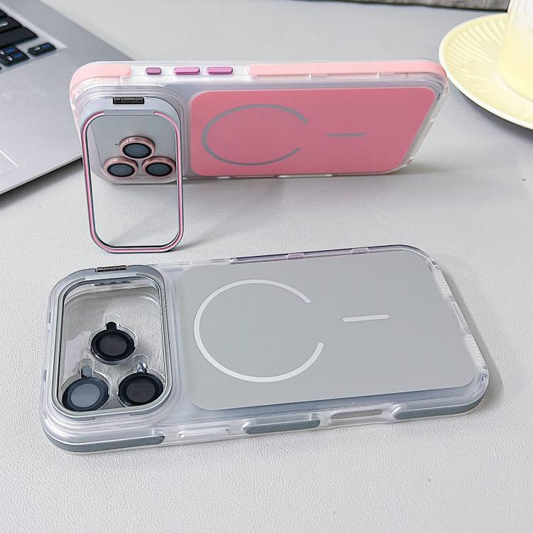 Funda híbrida de TPU y PC MagSafe para iPhone 17 Pro Max con soporte de lente galvanizado (blanco)