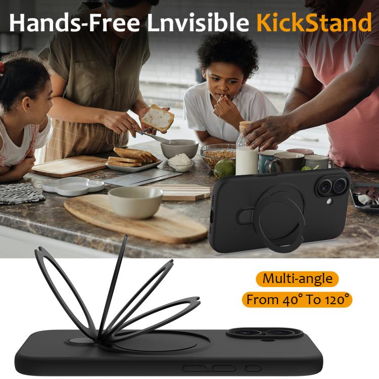 Funda magnética de silicona líquida MagSafe para iPhone 17 con soporte para anillo (negra)
