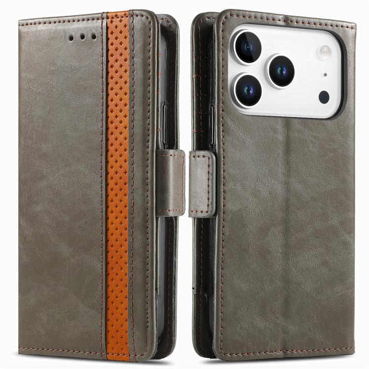 Funda Neo Splicing de cuero con doble hebilla magnética para iPhone 17 Pro Max (gris)
