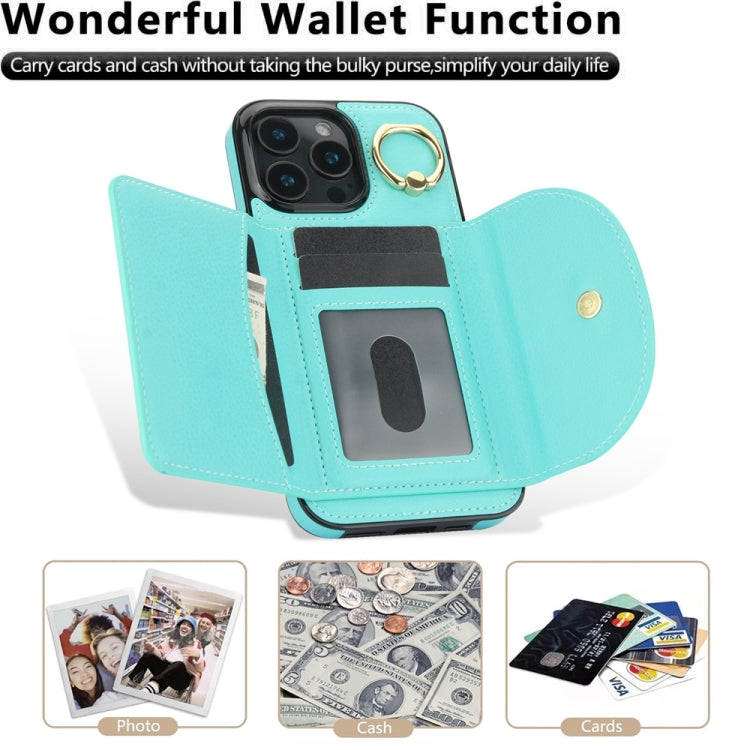 Funda para iPhone 16 Pro Ym007 con Tarjetero y Anillo Tacto Suave (Verde)