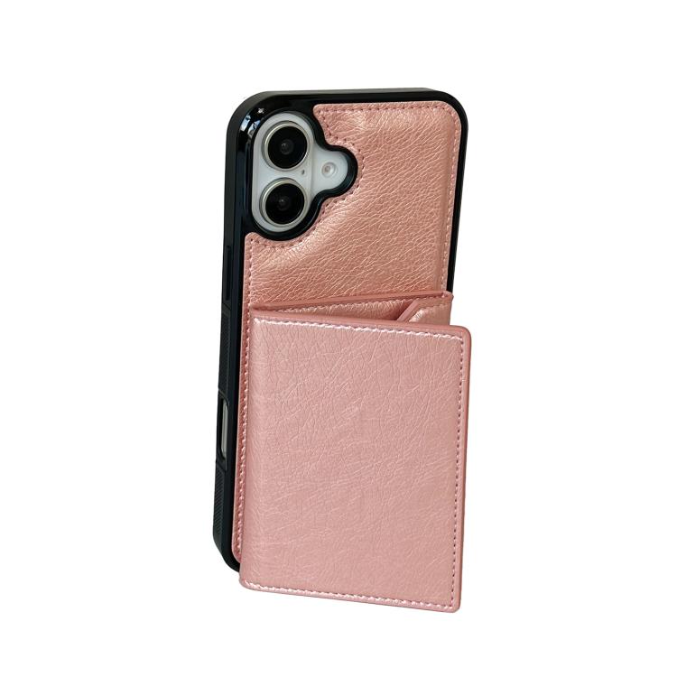 Funda para iPhone 17 con hebilla metálica de color sólido y ranuras para tarjetas (oro rosa)
