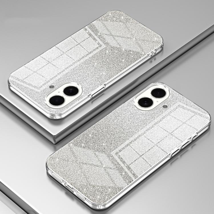 Funda para iPhone 17 con purpurina en polvo degradado y galvanizada (transparente)