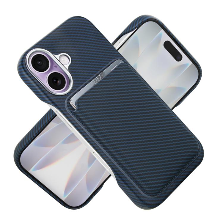 Funda para iPhone 17 con tarjetero magnético MagSafe de fibra de carbono (azul)