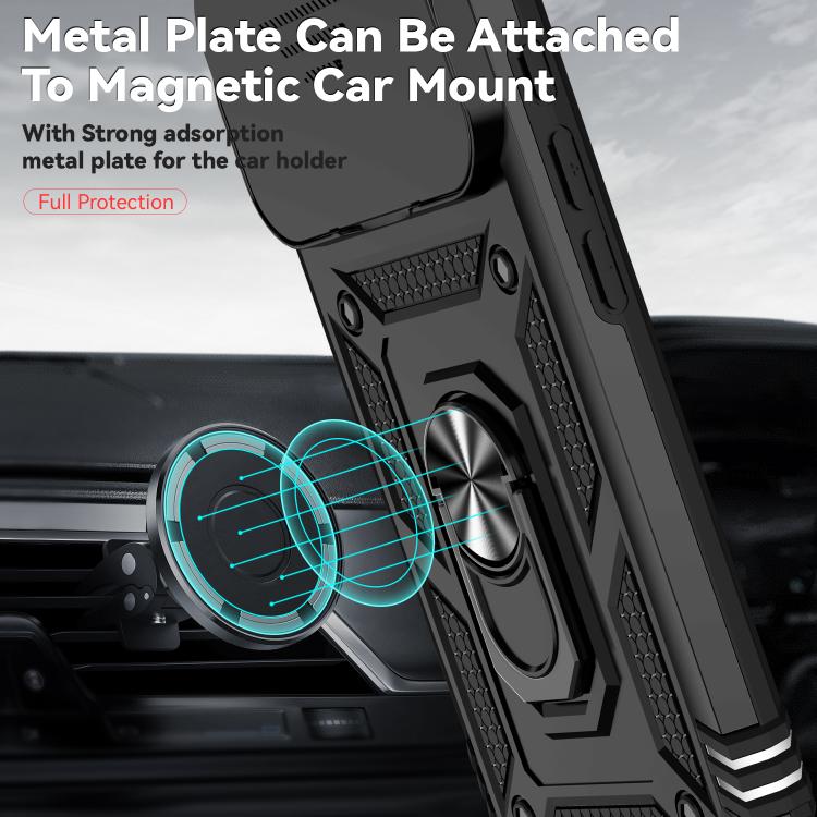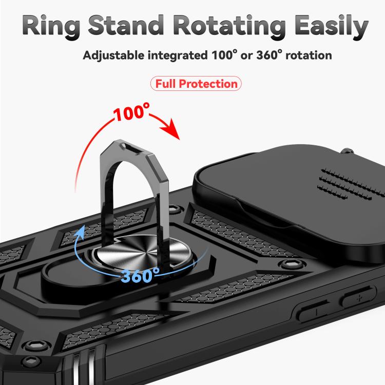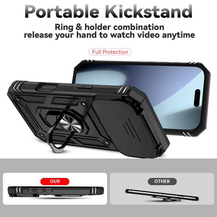 Funda para iPhone 17 Pro con soporte deslizante tipo cámara (negra)