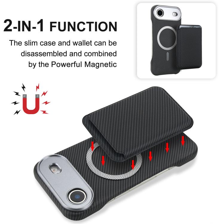 Funda para iPhone Air con tarjetero magnético MagSafe de fibra de carbono (negra)