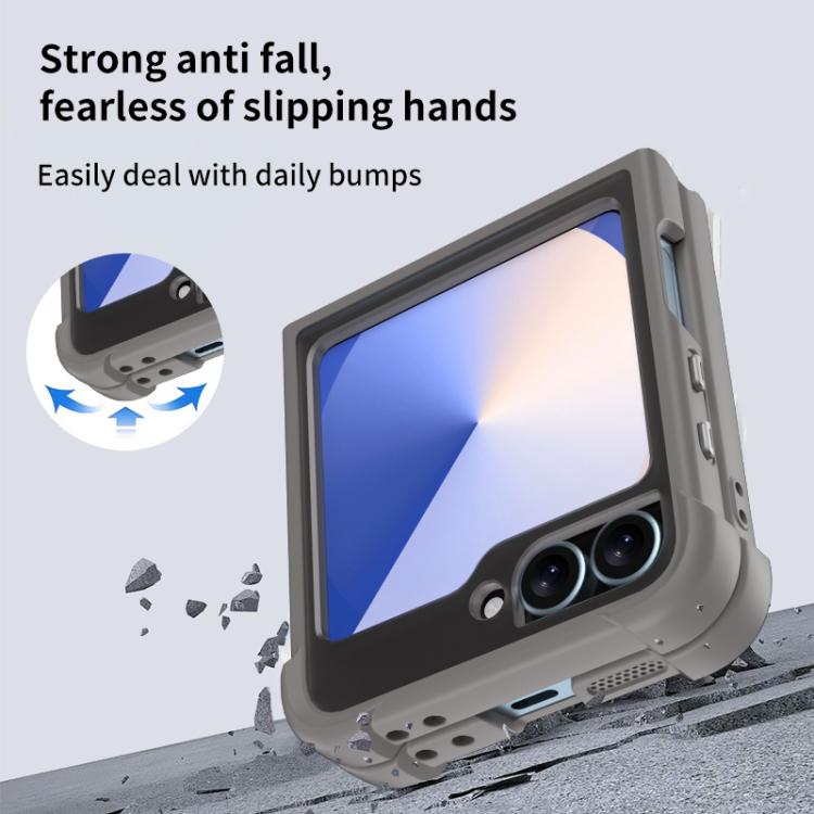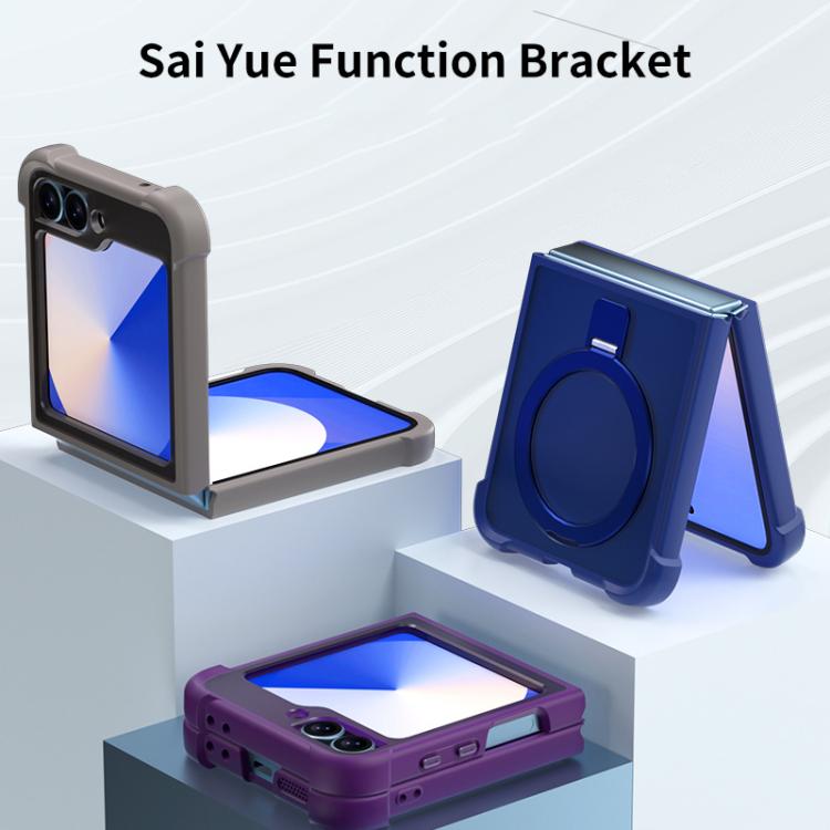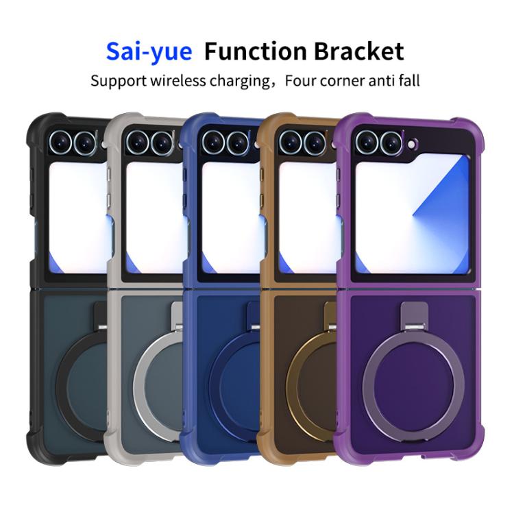 Funda para Samsung Galaxy Z Flip6/5 con soporte MagSafe de cuatro esquinas a prueba de golpes (negra)
