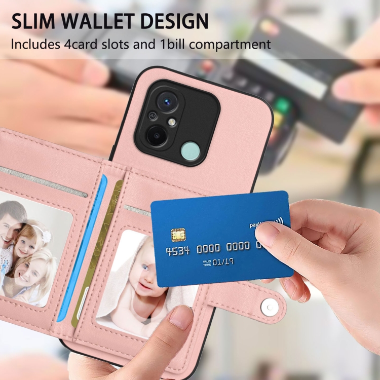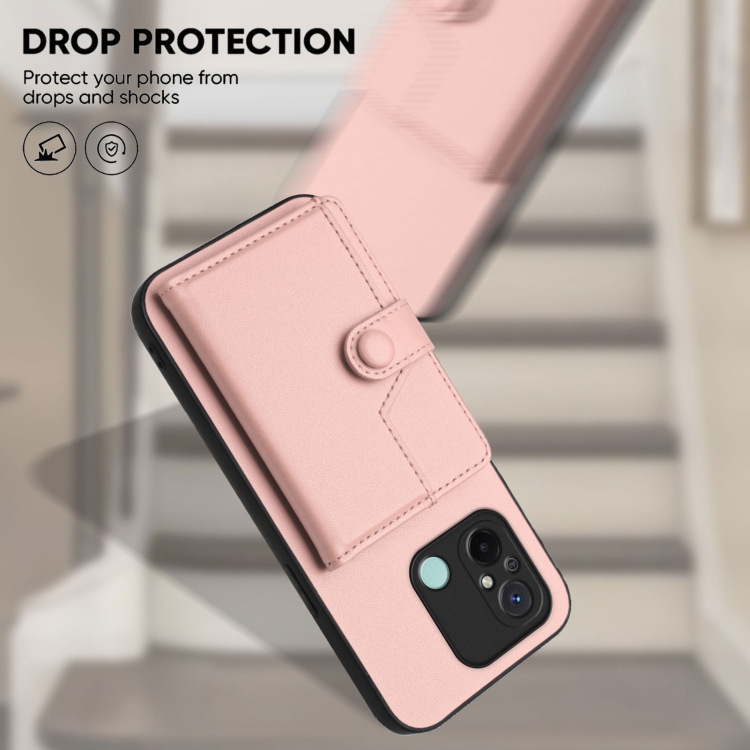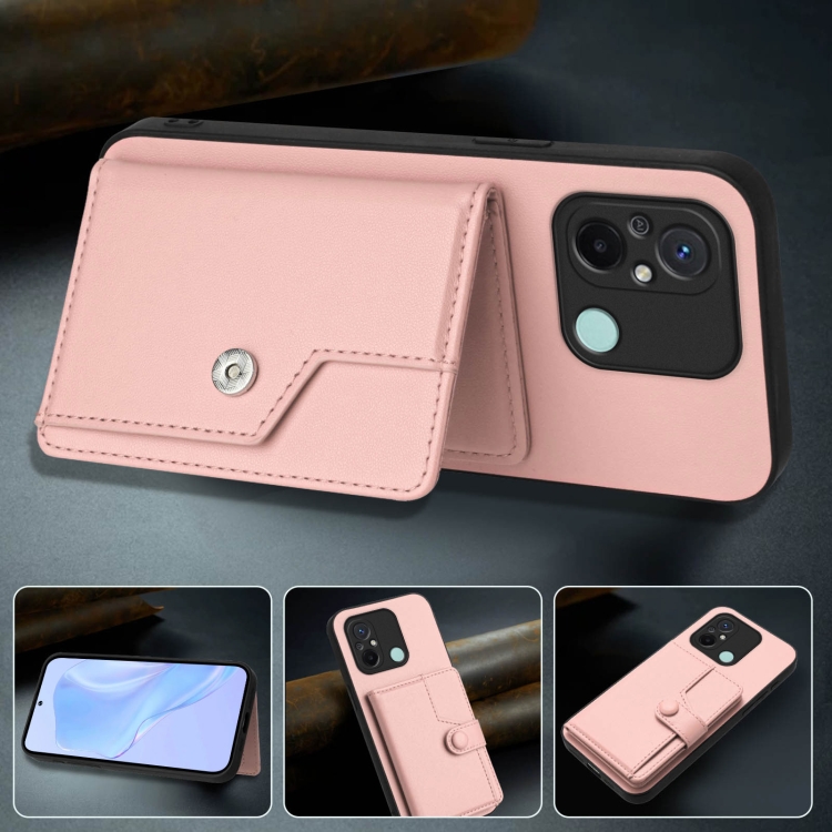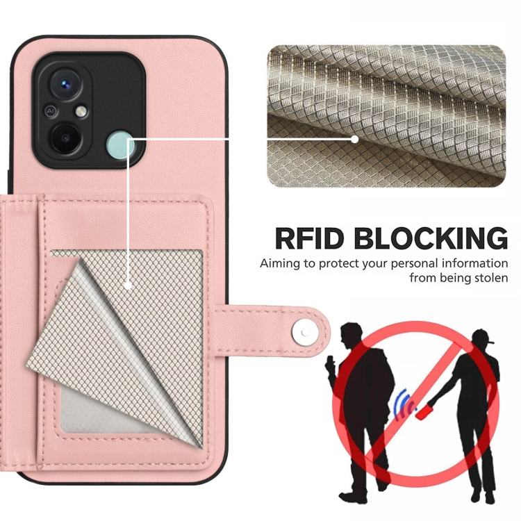 Funda para Teléfono Antirrobo con Botón y Tarjeta Rfid para Redmi 12C/11A (Rosa)