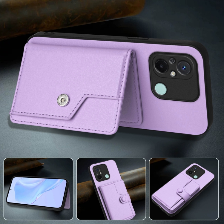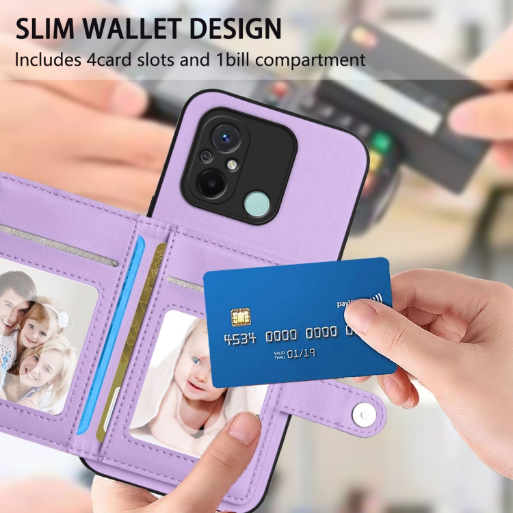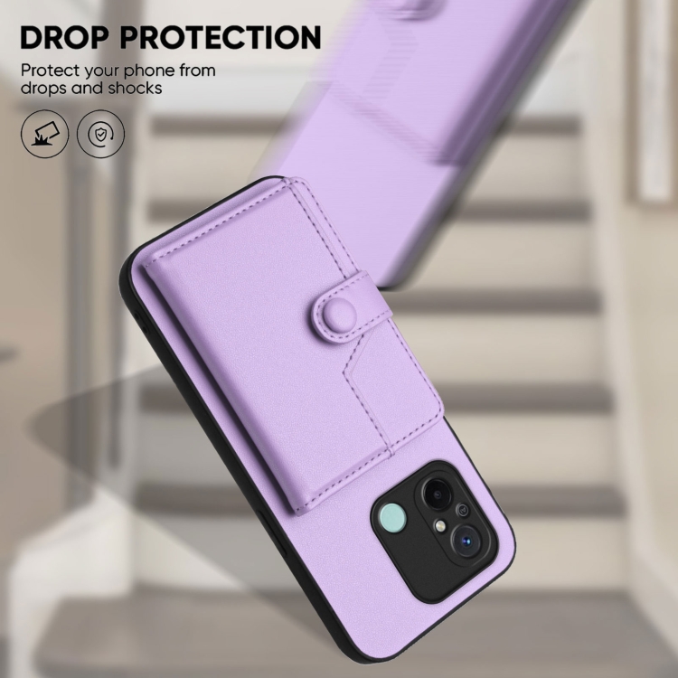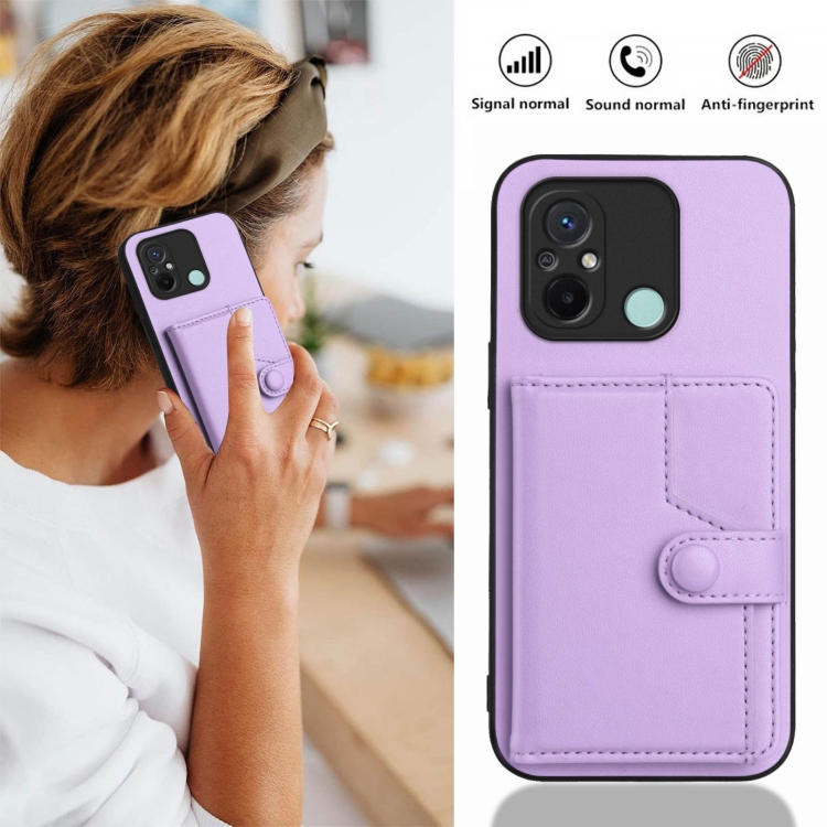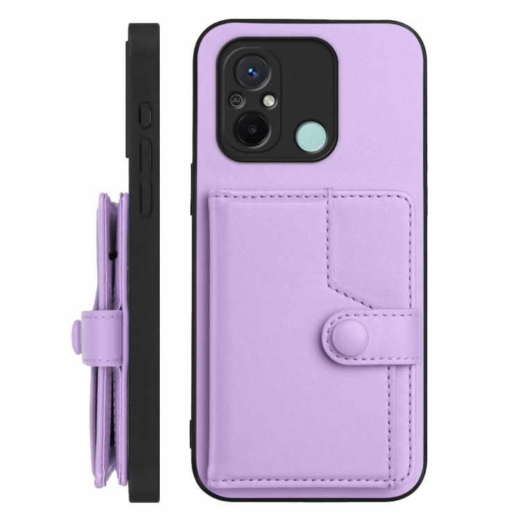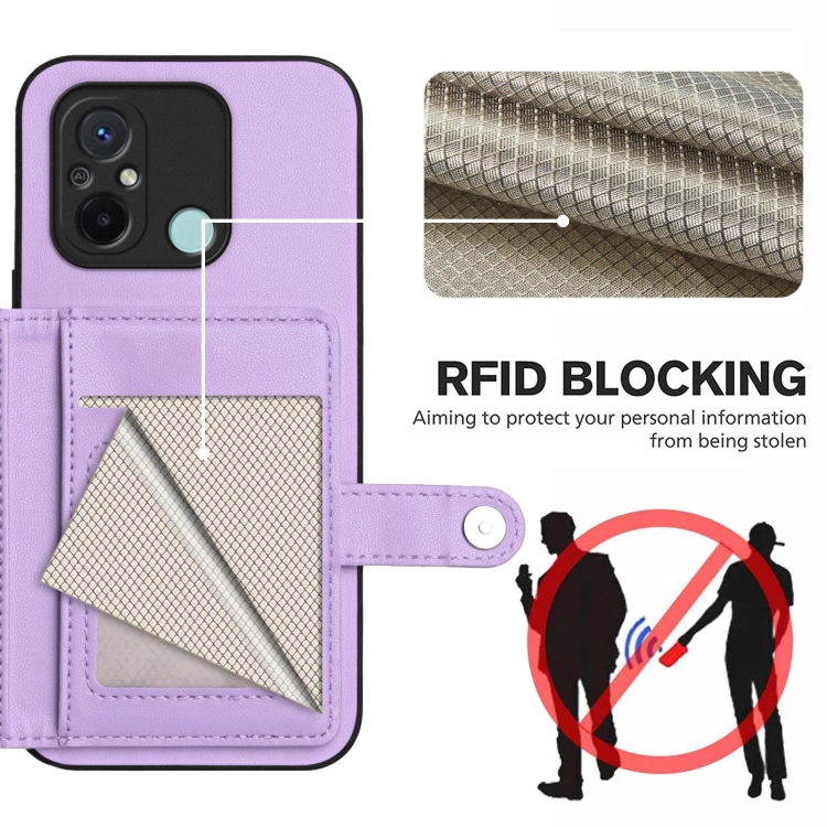 Funda para Teléfono Antirrobo con Botón y TaRJetero Rfid para Redmi 12C/11A (Morado)
