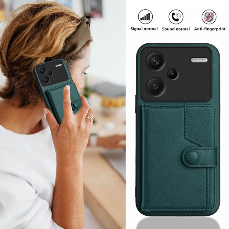 Funda para Teléfono Antirrobo con Botón y TaRJetero Rfid para Redmi Note 13 Pro+ (Verde)
