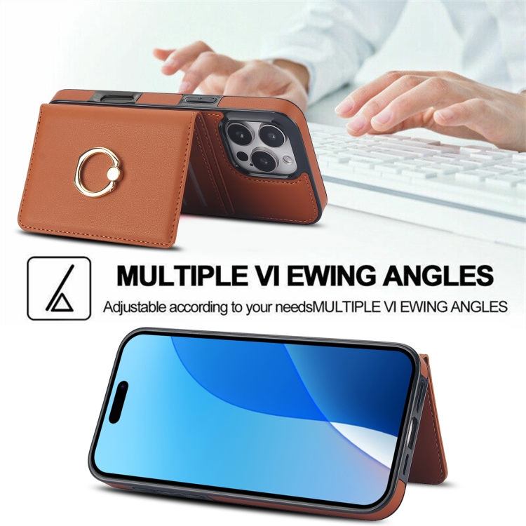 Funda para Teléfono iPhone 16 Pro Max con Anillo y Tarjeta Antirrobo Rfid (Marrón)
