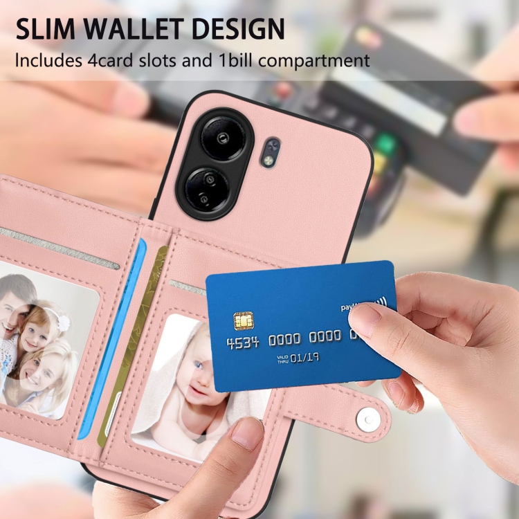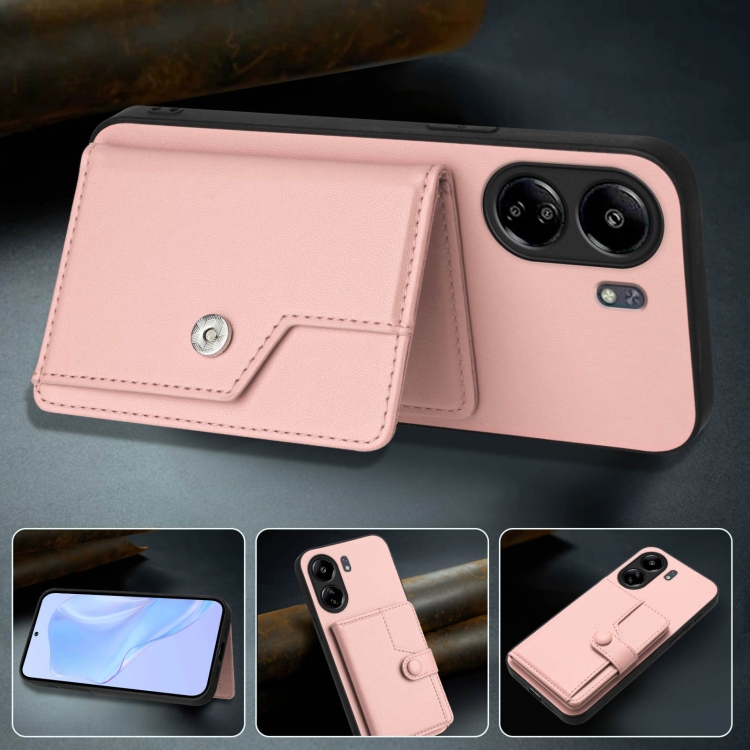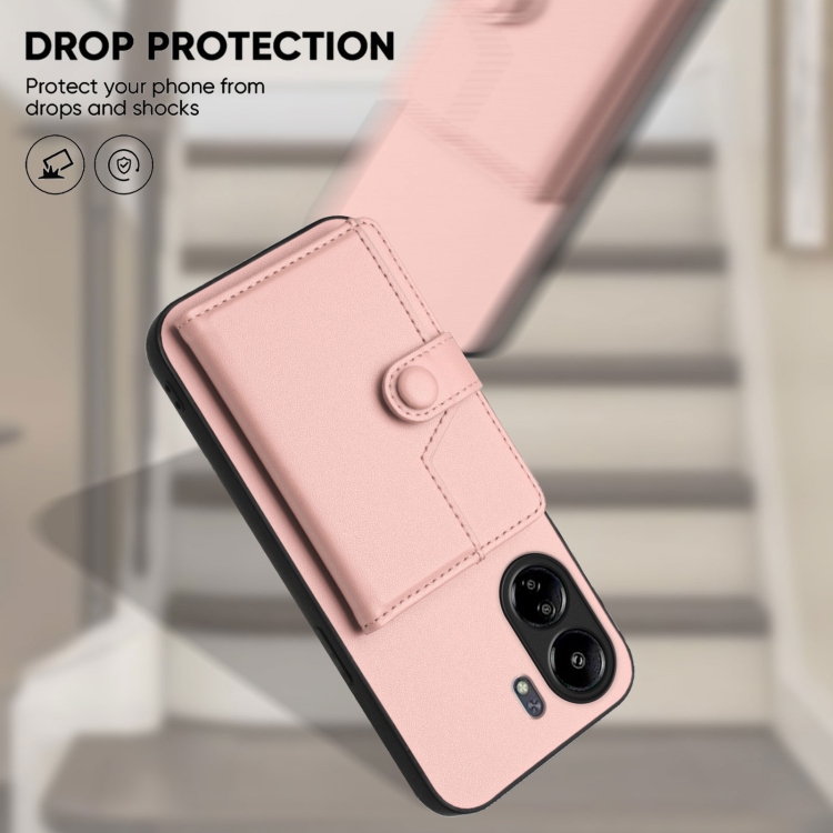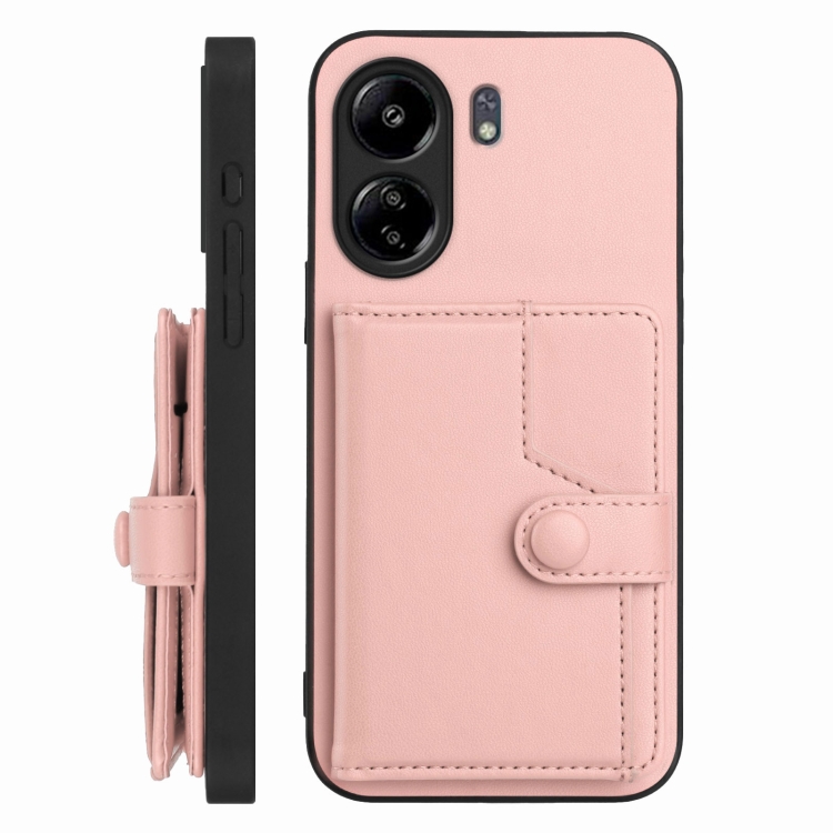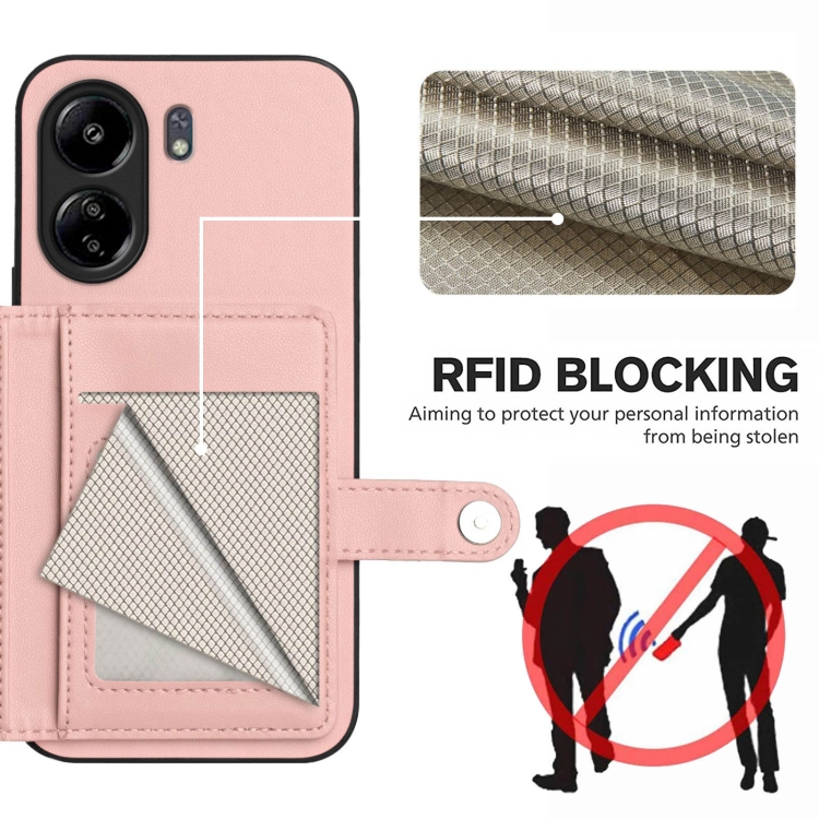 Funda para Teléfono con Botón y Tarjeta Rfid Antirrobo para Redmi 13C 4G Global (Rosa)