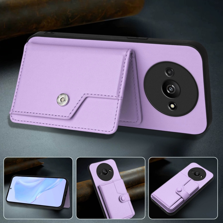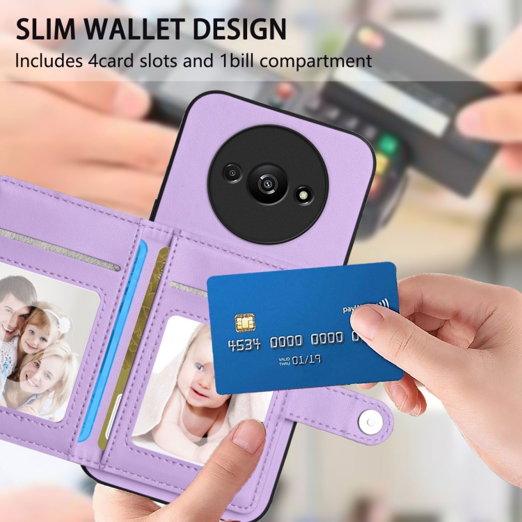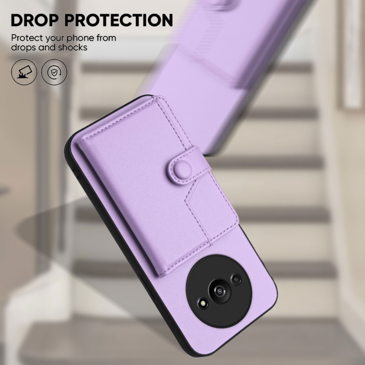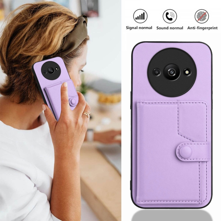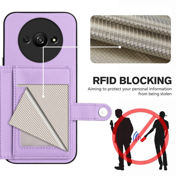 Funda para Teléfono con Botón y TaRJetero Antirrobo Rfid para Redmi A3 4G Global (Morado)