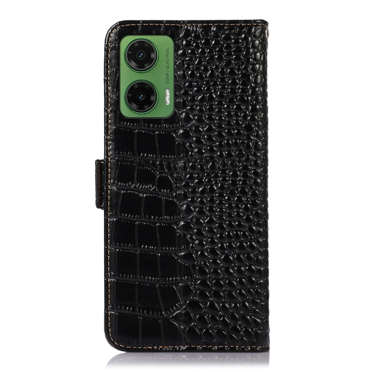 Funda para Teléfono Motorola Moto G35 con Capa Superior de Piel de Vaca y Cocodrilo (Negra)