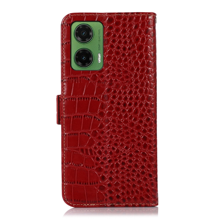 Funda para Teléfono Motorola Moto G35 con Capa Superior de Piel de Vaca y Cocodrilo (Rojo)